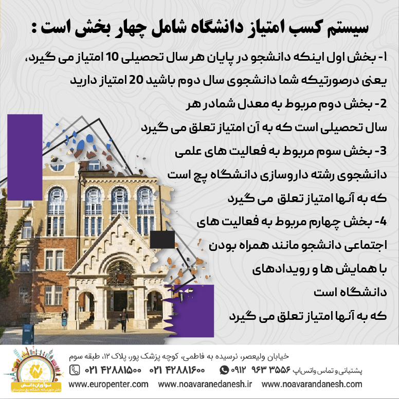 سیستم کسب امتیاز دانشگاه شامل چهار بخش است :
